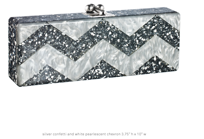 Edie Parker is a collection of vintage inspired acrylic handbags, founded by Brett Heyman, former Director of PR at Gucci. The design is inspired by clutches from 1950s and 1960s favored by socialites and showgirls. Retro-chic, acrylic, slim silhouetted bags are objects of desire around the world. They have many celebrity fans by far, such as Rachel Bilson, Kate Hudson, Molly Sims and many more. There are four models - Edie, Flavia, Jean and Lara, available in countless colors and designs: striped, with glitter, hearts, stars etc. You can get one of these at Barneys and Saks, which already says a lot about them.